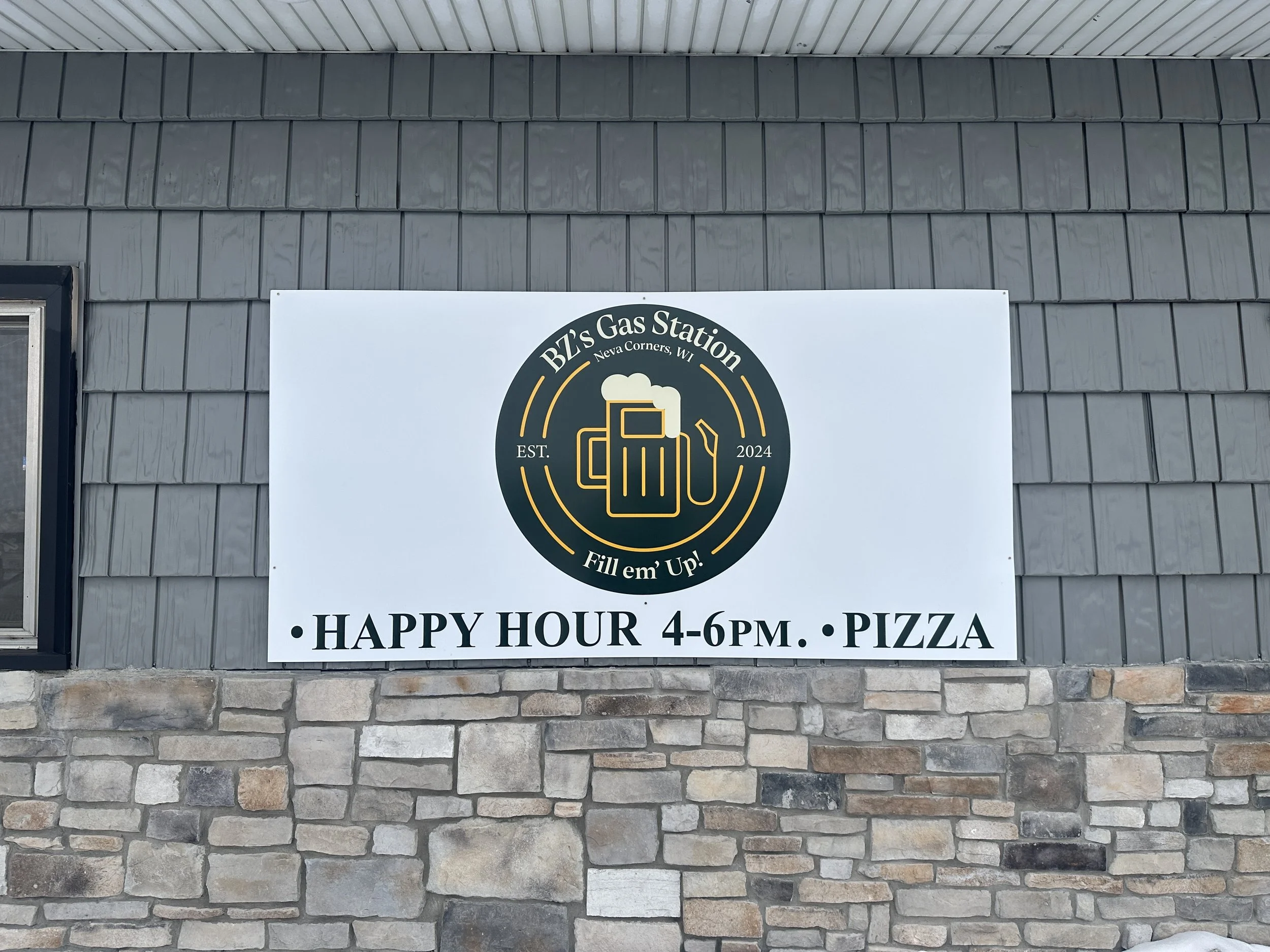 The main focus was the centerpiece for this logo which involves a gas pump and a beer mug being mashed together. This gave a fun feel while also being clean and creative enough to be eye catching. The color scheme was quite the debate as they wanted “Wisconsin team colors.” This gave me a lot of options and proved to be difficult when creating a final product. I ended up going with the Packers’ colors because they mesh really well together and the gold stood out amongst the bar.